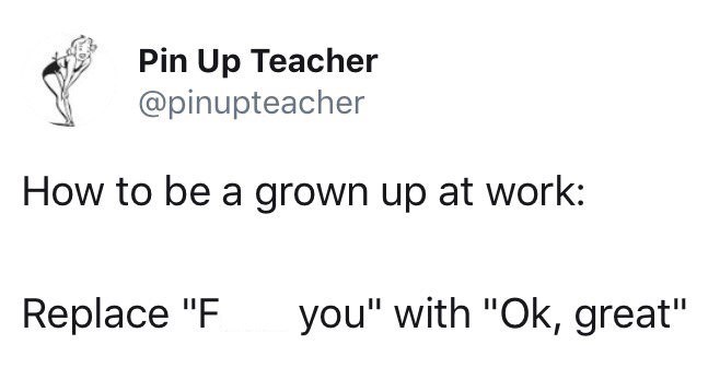 Encontre diversos livros escritos por Press Sassy Words com ótimos preços. Read reviews from worlds largest community for readers. This page is a collection of pictures related to the topic of How to Be Grown Up at Work Meme which contains 100 Funny Work Memes Work Memes CollectionsI FEEL YOU BUDDY. Discover and save your own Pins on Pinterest. How to be a grown-up. How To Be A Grown Up At Work Work Humor Work Memes Funny Quotes. You dont have to like anyone that you work with.