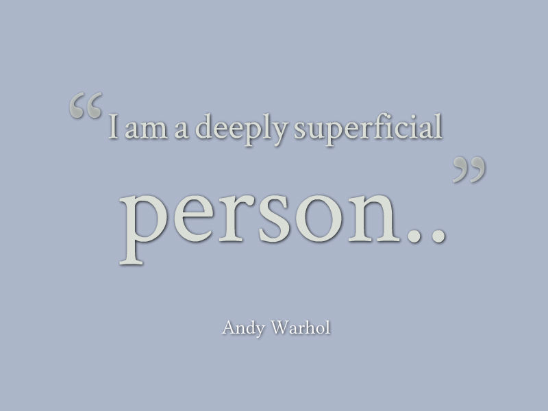 Posted by 1 day ago I am a deeply superficial person 2 comments. I am a deeply superficial person. Download or share this Andy Warhol quote with your friends on facebook linkedin whatsapp twitter and on other social media.
