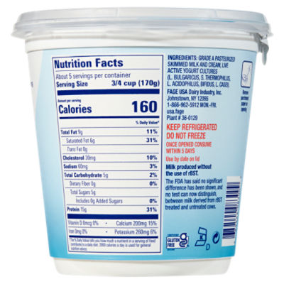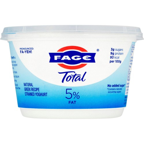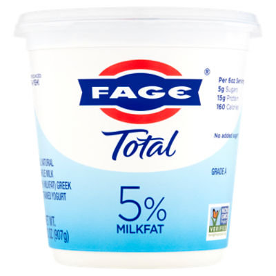 Fage Total 0 Greek Yogurt. Total 5 Milkfat Plain Greek Yogurt - 176oz. In Greek FAGE means to eat From the simplest recipes to the most sophisticated menus when you use FAGE in the kitchen its simply delicious.
